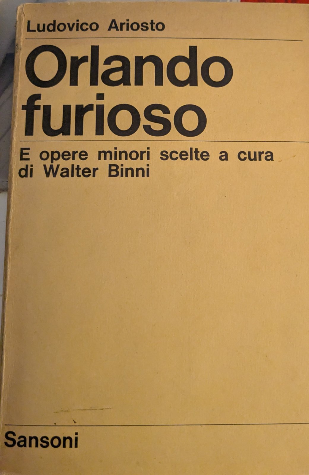 Orlando furioso. E opere minori scelte a cura di Walter Binni.