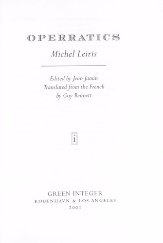 Operatics by Michel Leiris
